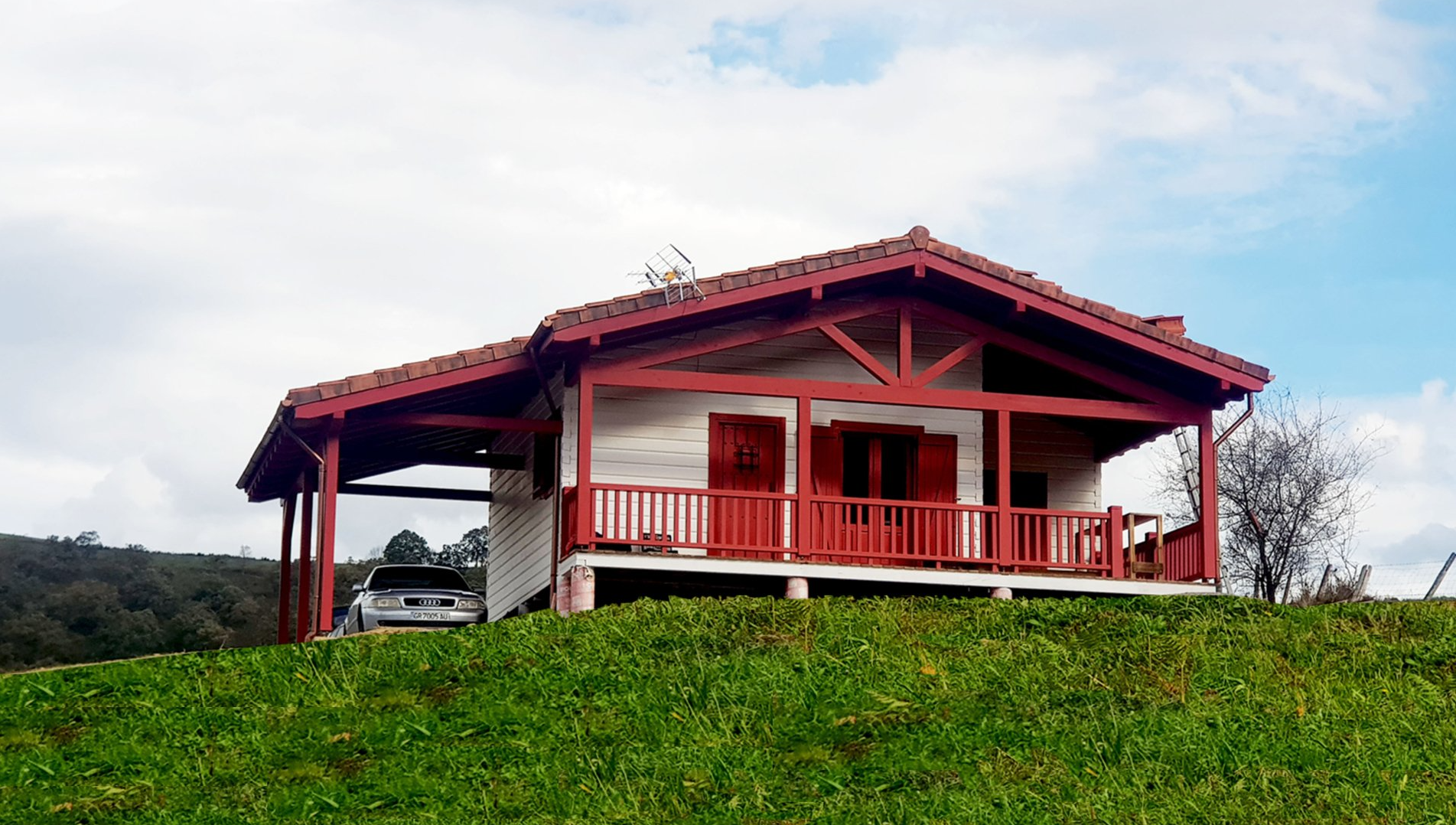 Vivienda unifamiliar en Jaxu de 45 m2. De estilo tÍpico vasco - frances, se proyecta una vivienda que busca dar sensacion de cobijo en su interior, sin renunciar al disfrute del espacio exterior que le rodea, un entorno idilico de montañas verdes tipico de la zona donde se situa.